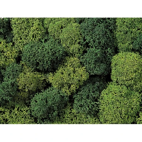 Noch decormos bestaat uit 100% IJslands mos en is daardoor een echt natuurproduct. Het is met speciaal voorbewerkt en geverfd zodat het lang zijn natuurlijke elasticiteit behoud. Omdat elk stukje mos authentiek is, is het ideaal voor origineel en natuurgetrouw uitziende bosjes, heggen en bodembedekkers.