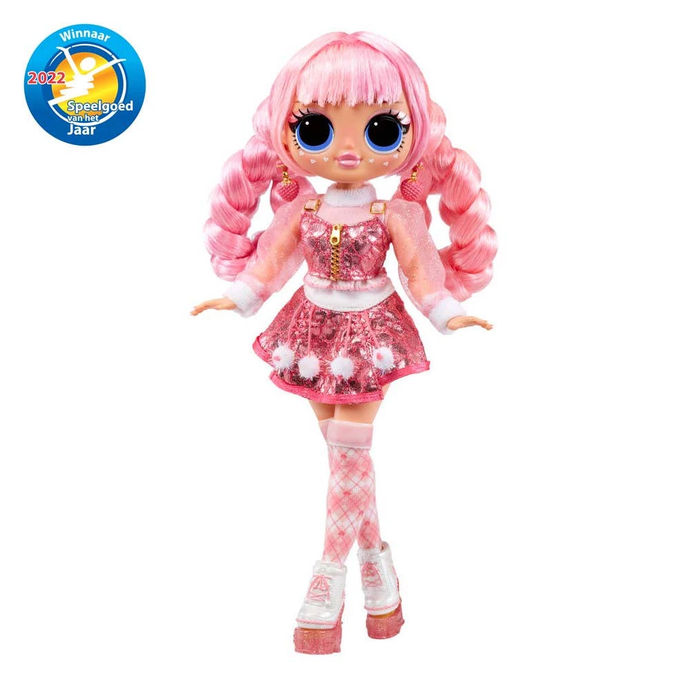 - Inhoud: 1 L.O.L. Surprise! O.M.G. Fashion Show Style Edition pop, transformerende mode, hoepeloorbellen, kledinghanger, tasje, bril, haarclips, halsketting, poppenstandaard, haarborstel, paspop, tijdschrift en tas om te winkelen.