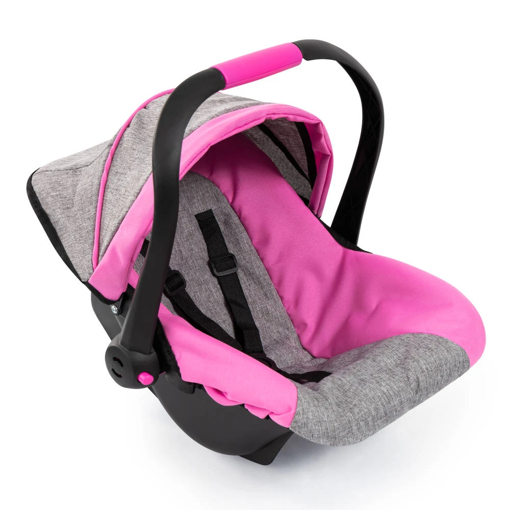 In deze deluxe autostoel met zonnescherm is je pop altijd beschermd als je op pad gaat. Dit moderne poppenautostoeltje heeft een zeer modieuze kleur en is geschikt voor poppen tot 46 cm. Met de prachtige stof en geïntegreerde zonnescherm zit de pop of knuffel comfortabel en is hij beschermd tegen zon en wind in het gezicht. Dankzij de veiligheidsgordel is de pop of de knuffel ook beveiligd tegen vallen en kan hij of zij lekker wegdommelen tijdens het wandelen. Het ergonomische handvat is comfortabel om te dragen, hierdoor is het gemakkelijk om de pop of de pluche overal mee naartoe te nemen. Het is ook mogelijk om het poppenautostoeltje op de Vario-poppenwagen te monteren.