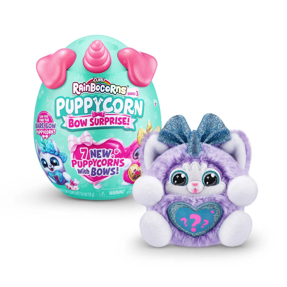 Pak 5 leuke verrassingen uit met deze Rainbocorns Sparkle Puppy Bow Surprise set. Combineer unboxing, verrassingen en een schattig, pluchen figuur.