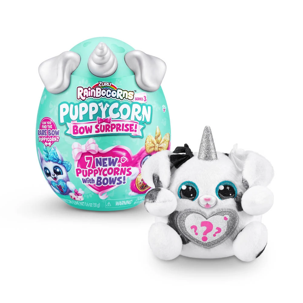 - De set bevat 1 Puppycorn ei, 1 Puppycorn pluche, 1 Peel and Reveal hart, 1 Puppy Bow, 1 Boo-Boocorn ei, 1 Boo-Boocorn Pup, 1 Rainbocorn Jelly Slime poep, 1 Puppycorn stickerset en een verzamelalbum.Â