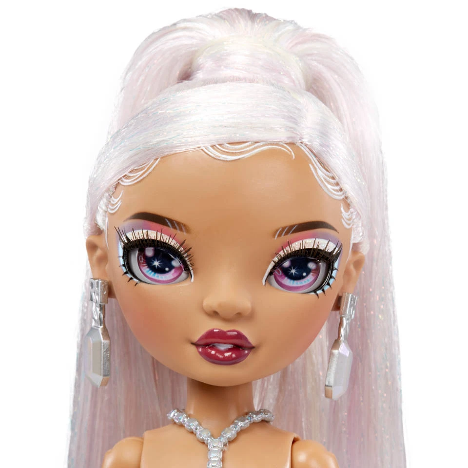 Rainbow High viert de feestdagen met deze schitterende Feestdageneditie pop Roxie Grand. De prachtige pop draagt een iriserende jurk van organza met 683 kunstdiamanten, diamanten accessoires en schoenen met edelstenen: ze glinstert van top tot teen!